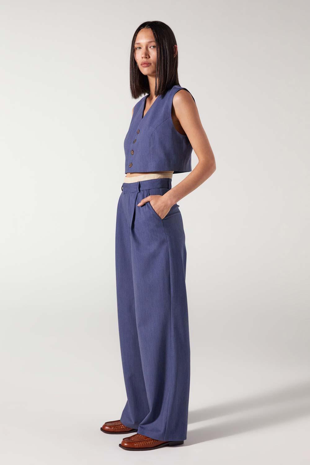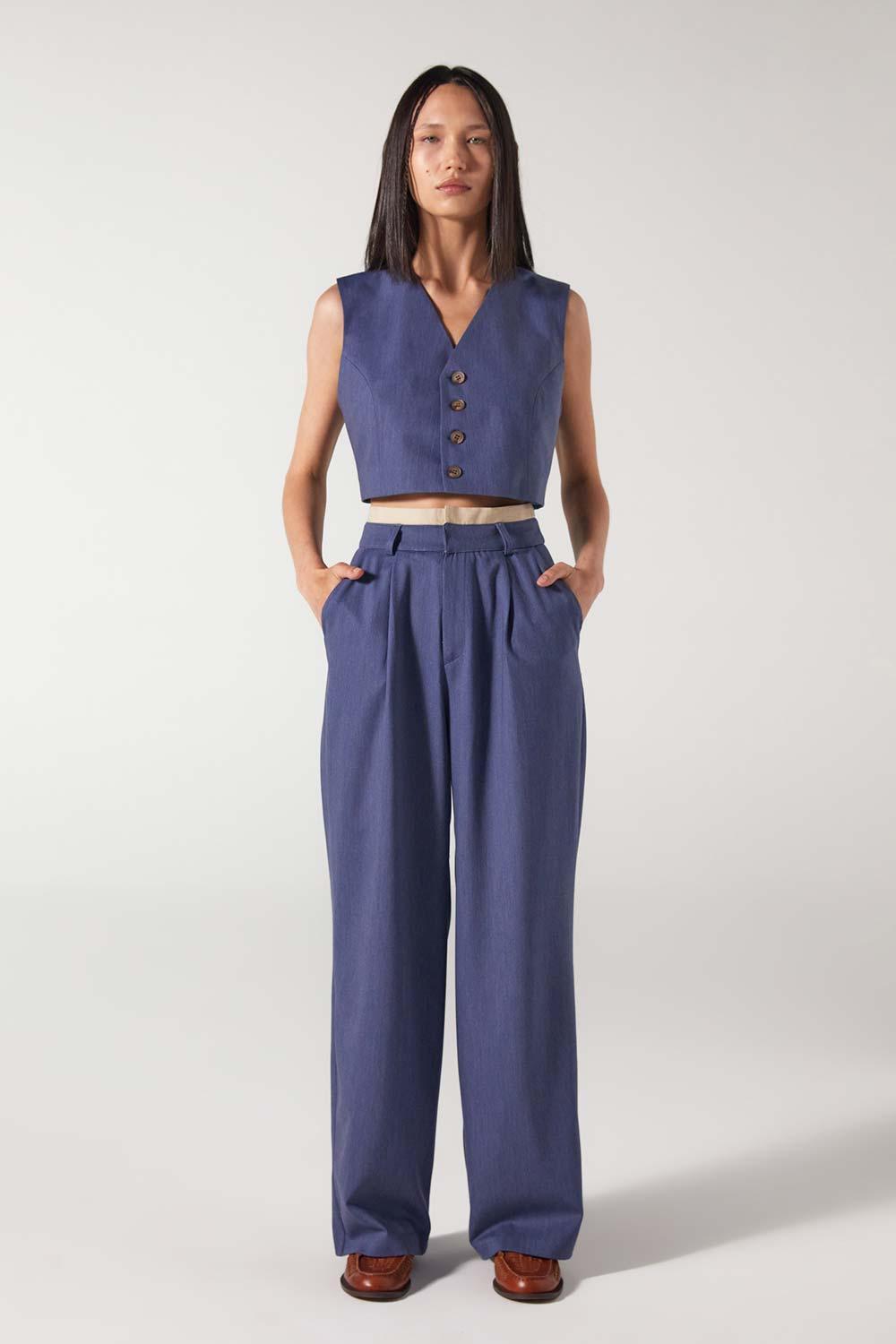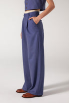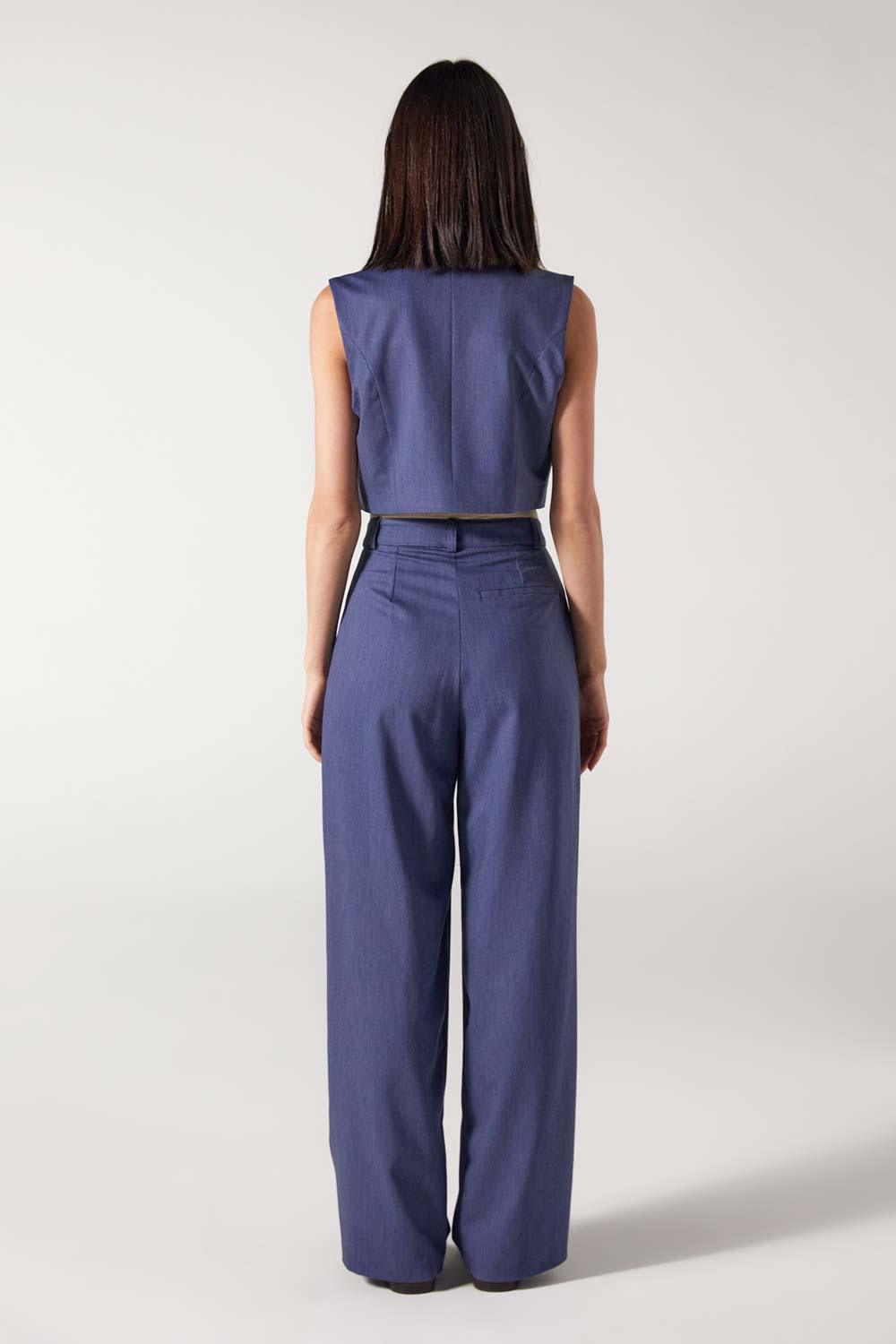 Cle Mavi Pileli Kemer Detaylı Yüksek Bel Pantolon