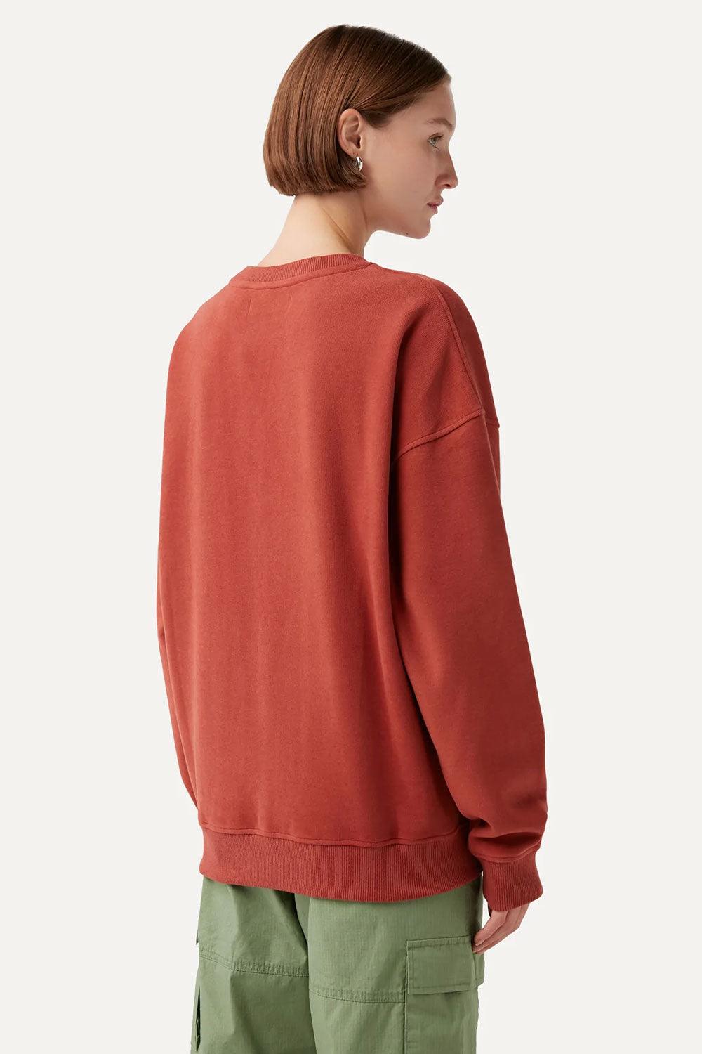 GOTS sertifikalı organik pamuktan ve geri dönüştürülmüş polyesterden üretilmiş, yumuşacık kumaşa sahip bu sweatshirt, sizi sıcacık tutar; geniş kesim kalıbı ile beden üzerinde dökümlü durur.