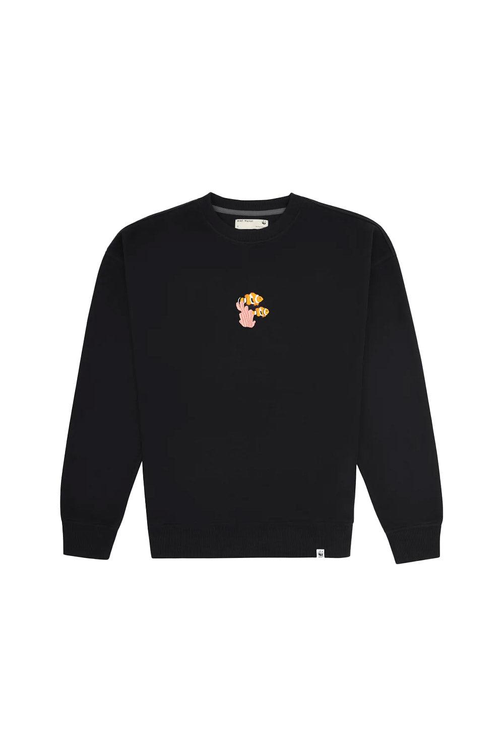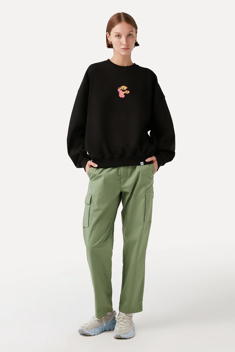 GOTS sertifikalı organik pamuktan ve geri dönüştürülmüş polyesterden üretilmiş, yumuşacık kumaşa sahip bu sweatshirt, sizi sıcacık tutar; geniş kesim kalıbı ile beden üzerinde dökümlü durur.