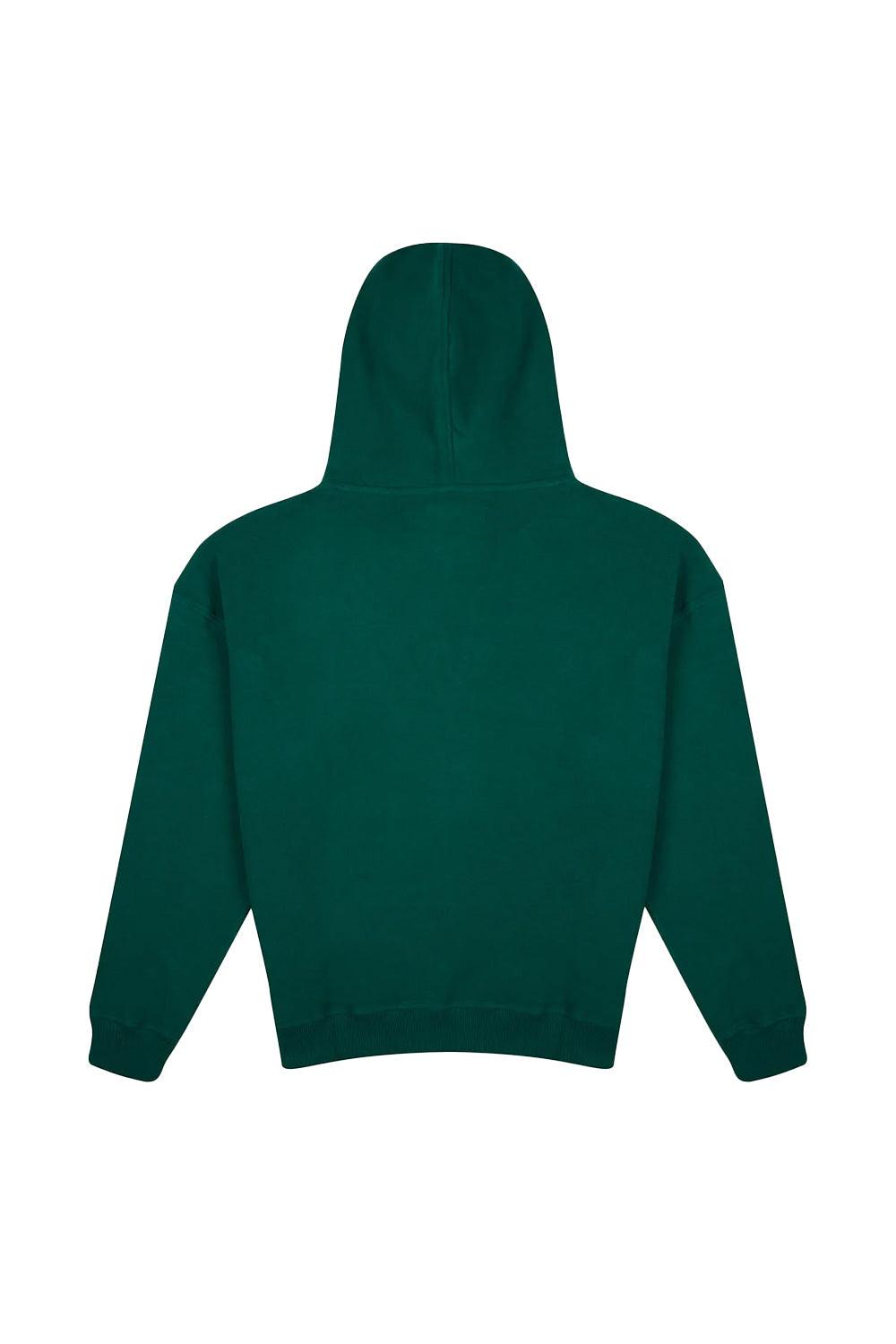 GOTS sertifikalı pamuktan ve geri dönüştürülmüş polyesterden üretilen bu hoodie, beden üzerinde dökümlü durur. Unisex kalıpta ve geniş kesimlidir.
