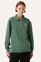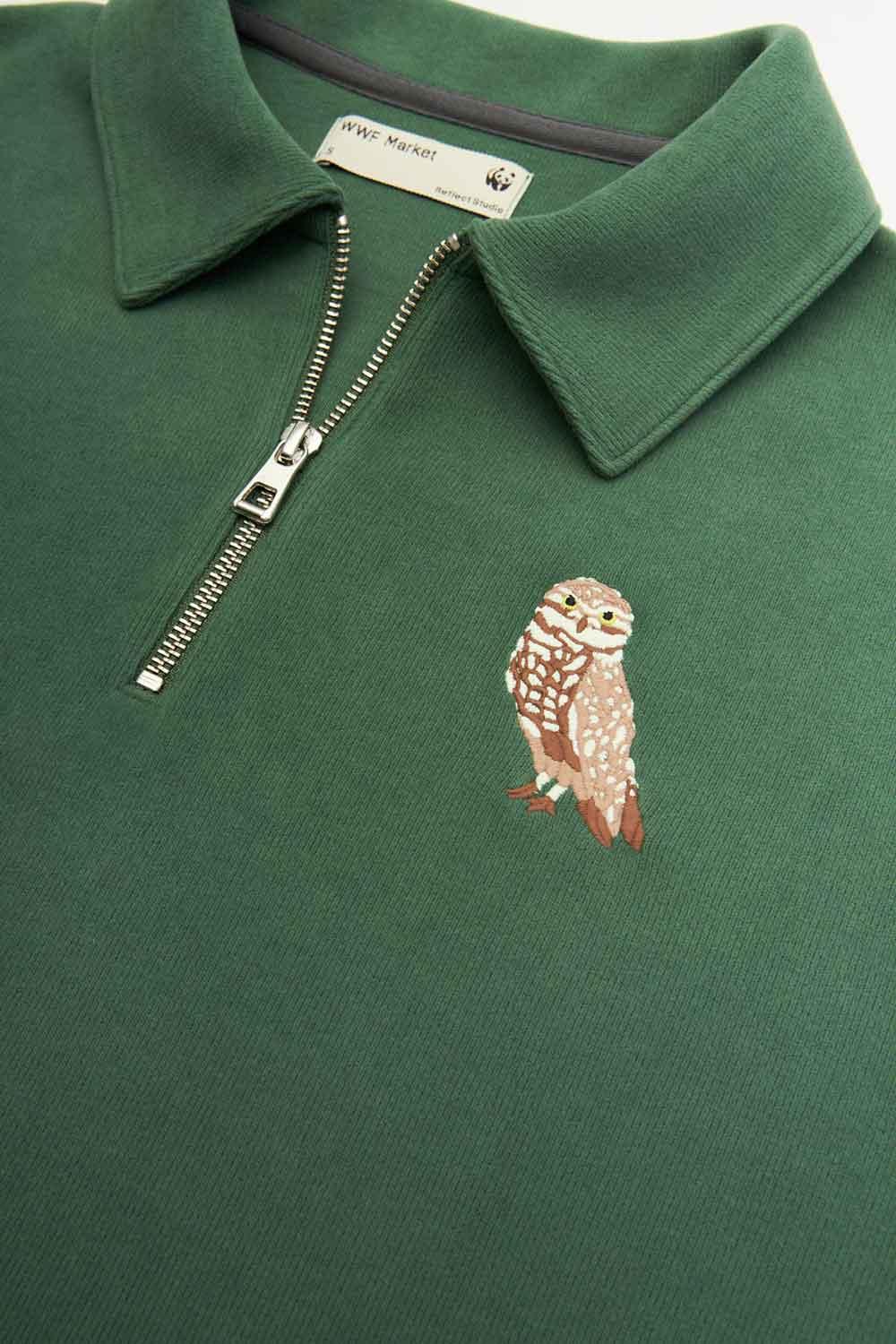 Yer Baykuşu Polo Yaka Sweatshirt - Yeşil