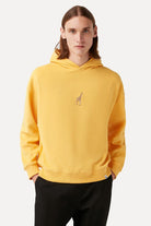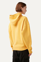 GOTS sertifikalı pamuktan ve geri dönüştürülmüş polyesterden üretilen bu hoodie, beden üzerinde dökümlü durur. Unisex kalıpta ve geniş kesimlidir.